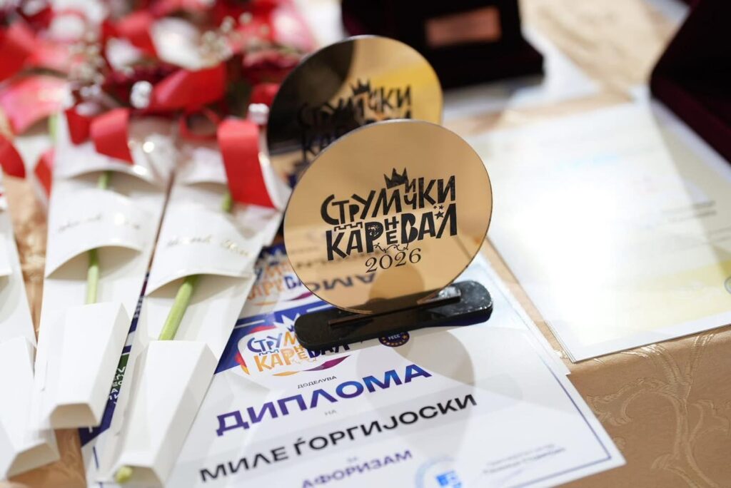 Во Центар за култура „Антон Панов“ во Струмица вечерва се одржа свеченото доделување на наградите од 27-от Меѓународен фестивал на афоризам и карикатура „Струмица 2026“, настан кој традиционално е дел од програмата на Струмички карневал.