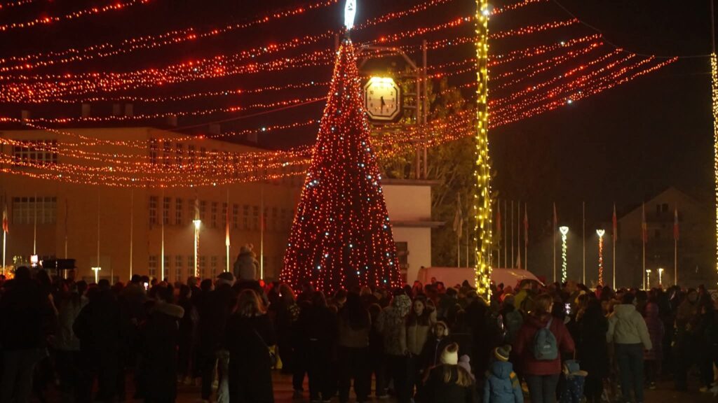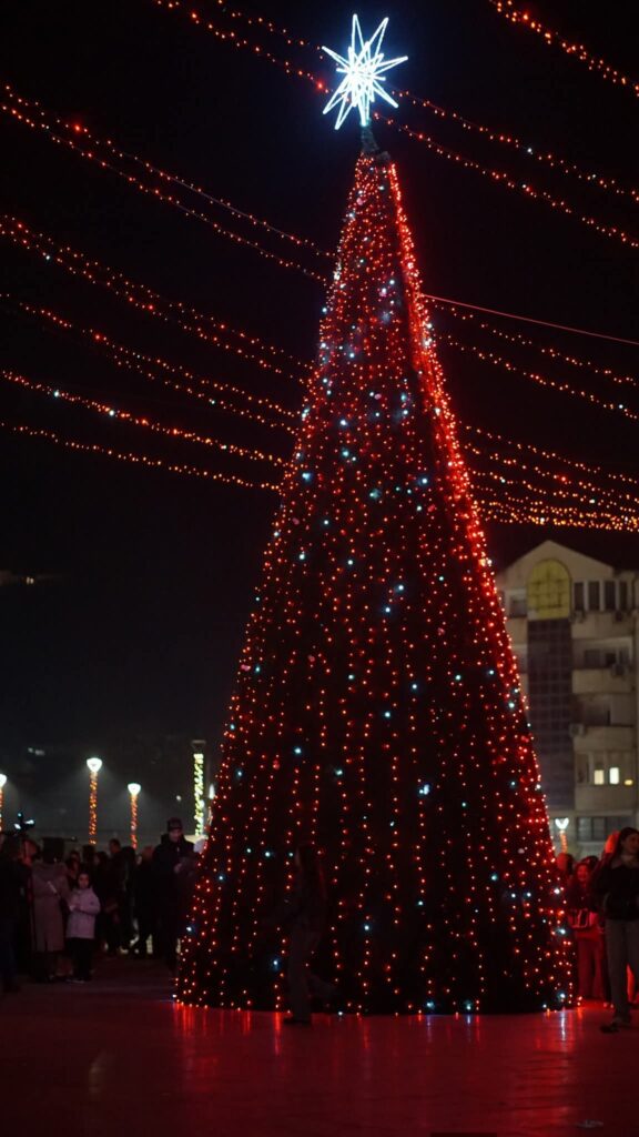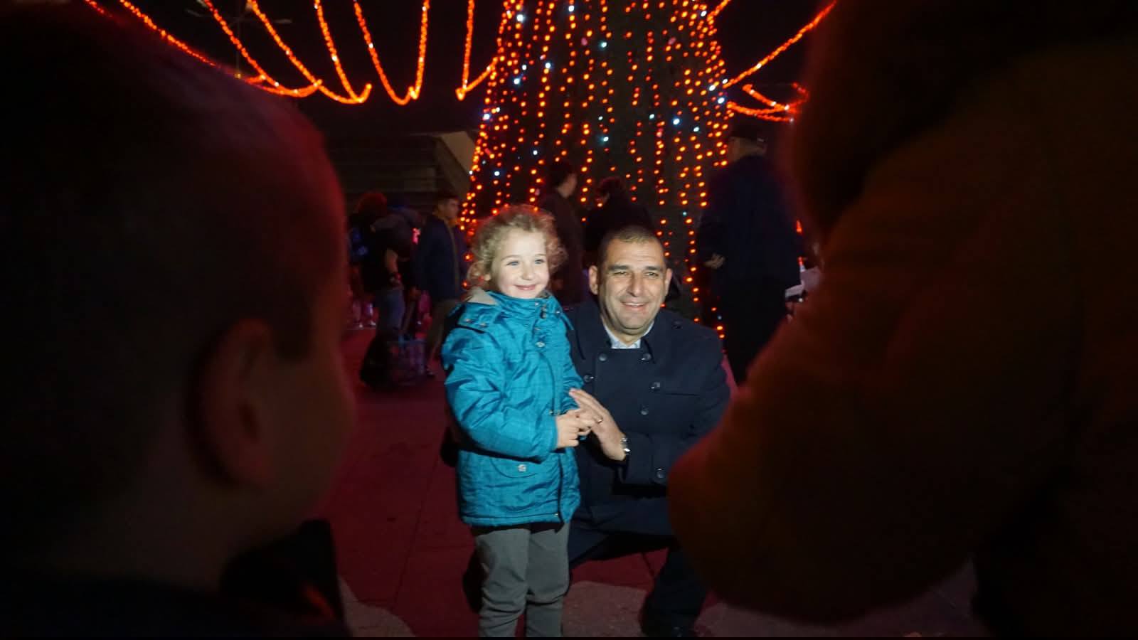 Прва светна големата новогодишна елка поставена на градскиот плоштад, а на овој чин присуствуваа голем број деца и граѓани, а радоста и среќата со нив ја сподели и градоначалникот на општина Струмица, Петар Јанков.