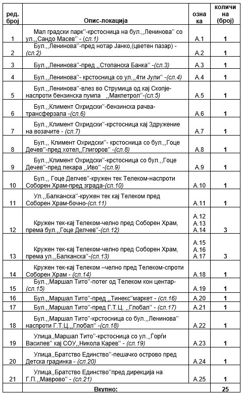 а) ОПШТ ОПИС И МЕСТОПОЛОЖБА НА ЛОКАЦИИТЕ ЗА РЕКЛАМНИТЕ ПАНОА (БИЛБОРДИ) СО ДИМЕНЗИИ (5,0 х 2,4):