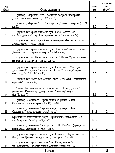 б) ОПШТ ОПИС И МЕСТОПОЛОЖБА НА ЛОКАЦИИТЕ ЗА РЕКЛАМНИТЕ ПАНОА (БИЛБОРДИ) СО ДИМЕНЗИИ (4,0 х 3,0):